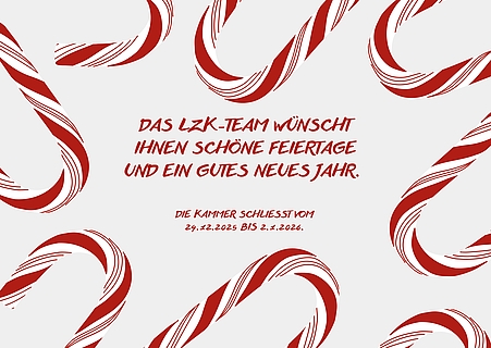 Das LZK-Team wünscht Ihnen schöne Feiertage und ein gesundes neues Jahr. Die Kammer ist vom 24.12. bis 2. Januar geschlossen. Am Montag, den 5. Januar sind wir wieder für Sie da!